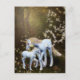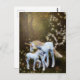 Eine fantasievolle, einzigartige Postkarte mit einer Mutter-Kind-Einhorn, umgeben von ihrem eigenen Zauber, Sternen und Märchenstaub, stehend in einer wunderschönen Waldverglasung in einer magischen Fantasielandschaft.