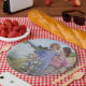 Mutter und Kind am Fluss Mit wilden Rose Pappteller