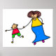 Niedliche Cartoon skurrile Illustration einer glücklichen kaukasischen Mutter und Sohn stand Händchen. Einfach anpassen und Ihre eigene Hintergrundfarbe auswählen oder Text hinzufügen. Bilder auf verschiedenen Geschenken und Produkten erhältlich.