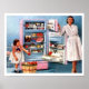 Mutter und Tochter neben Kühlschrank und Äpfeln Poster