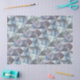 Elegantes geometrisches Muster mit Perlmutt-Foto. Hauptfarben dieses eleganten und modernen abstrakten Designs: subtile Farbtöne wie Blau, Grün, Rosa, Grau.