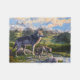 Ein Mutterwolf steht auf einer Klippe mit Blick auf ein Tal unten mit ihren zwei jungen Wolfjungen. Dieses landschaftliche Land aus Bergen, Flüssen, Wäldern und Wiesen gehört zu ihrem Wolfspacken. Das Originalgemälde trägt den Titel "Passing It On", denn der Mutterwolf hat ihre Welpen auf diesen Hügel gebracht, um ihnen die große und wunderschöne Wildnis zu zeigen, die sie erben werden, wenn sie erwachsen sind und als Anführer der Gruppe übernehmen.