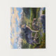 Mutter Wolf & Welpen Bergflusstal Wandteppich