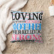Mutter Word Cloud Kissen, Style 2 ist ein Grafik-Art-Design dekorativer Text Wörter beschreiben Mutter. Alles, was sie Ihnen in verschiedenen dekorativen Schriftart und Farben beschrieben. Die Farben dieses Kissens sind schwarz, rosa und blau auf einem massiven weißen Hintergrund. Worte wie: liebevoll, sanft; stark, immer gläubig; sanft, freundlich; Ehre deine Mutter, Werte und mehr! Das ist zu jeder Jahreszeit ein nettes Geschenk für Mama.