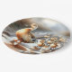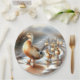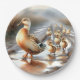 Ein Aquarellbild einer Mutterente führt ihre Enten über einen schlammigen Pfad mit Pfützen in einem Schmutzweg.