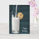 Schokoladenkekse auf Weißmilch auf schwarz und aquamarin kariertem Muster zum Geburtstag.