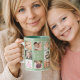 Ein Geschenk für Ihre Mutter, die ihr Leben mit einer Collage von 14 Fotos feiert. Weißer Text: Beste Mama je. Personalisieren und nutzen Sie Ihre eigenen Fotos von ihr, Kindern, Ehemann, Haustieren, Freunden. Weiche grünen Hintergrund. Perfekt als Muttertagsgeschenk, zum Geburtstag und zu Weihnachten.