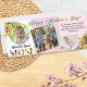Eine stilvolle Karte für den Muttertag mit dem Titel "Die beste Mama der Welt" und einem wunderschönen Blumenstrauß-Akzent. Die Karte mit einem weichen, rosa und weißen Hintergrund zeigt in eleganter Schriftzypografie oben die Worte "Muttertag glücklich". Personalisieren Sie mit drei Fotos Ihrer Wahl und Ihrer eigenen individuellen Nachricht.