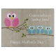 Fügen Sie Namen hinzu, um die blauen Triplets oder Jungs anzupassen. Ein lustiges, leichtes Design für deine Mutter! Cartoon Eule in hellen Farben mit Blätter und Ästen mit einem Happy Mother Day Text, den Sie personalisieren können.