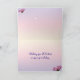 Diese Muttertagskarte verfügt über eine Kosmos-Blume, die an einem schönen Sommertag nach Himmel strebt! Die zarten Rosa- und Weißblütenblätter sind Set vor dem Hintergrund eines blauen Himmels und flauschiger weißer Wolken. Im Inneren sind kleinere Blüten auf einem weichen, pastellfarbenen Regenbogen verstreut. Der Text lautet: Glücklicher Muttertag! Wir wünschen Ihnen alles Gute an Ihrem besonderen Tag. Es kann an Ihre Bedürfnisse angepasst oder ganz gelöscht werden.