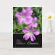 Bonne carte de voeux pour la fête des mères pour un cousin. Card a une image des géraniums Cranesbill dans les tons violet et lavande. Carte de voeux botanique à thème fleuri. Copyright © Shoaff Ballanger Studios.