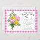 Feiern Sie die Mutter in Ihrer Familie mit einem Muttertagsbrunch. Diese hübsche Vorlageneinladung weist einen rosa-weißen Gingham-Rahmen mit gelben und rosa Rosen auf. Personalisieren Sie den Text mit Ihren Urlaubsinformationen.