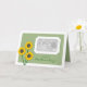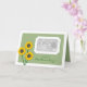 Muttertag Sonnenblumen Foto Grußkarte mit drei wunderschönen gelben Sonnenblumen mit grünen Stielen auf einem hellgrünen Hintergrund, umgeben von Weiß, zusammen mit gerahmten Foto-Raum, unterhalb dessen der benutzerdefinierte Text "Happy Mother's Day!" gefunden werden kann; perfekt für Muttertag. © Morning 6