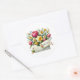 Der Aufkleber wird in einem hübschen floralen Blumenstrauß-Kunstdruck gezeigt.