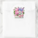 Der Aufkleber wird in einem hübschen floralen Blumenstrauß-Kunstprint gezeigt.