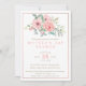 Muttertag Brunch Blumenwasser Einladung. Schöne Muttertagsbrunch-Einladungen mit fröhlicher lebender Koralle und antikem goldfarbenem Text mit einem digital angepassten Druck von handgemalten Aquarellblumen in Rosa-, Korallen-, Grün- und Blau-Grau-Tönen auf Weiß mit einem dünnen, rosa Kupferfarben. Personalisieren Sie Ihre Daten. (Alle Texte sind anpassbar). Zurück ist weiß gestreift auf rosa. Bitte besuchen Sie unseren Shop, Austen & Grace, um unsere wachsenden Designer-Sortimente zu sehen, und kontaktieren Sie uns, wenn Sie zusätzliche passende Produkte oder Hilfe über den Kontakt-Button oder E-Mail direkt unter contact@austenandgrace.com benötigen