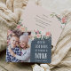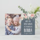 Nur die besten Mütter werden nach Nonna befördert! Teilen Sie die Gratulationen der Mutter mit dieser schönen Flachkarte, die ein wertvolles Foto ihres Enkels oder Enkels enthält. Persönlich mit ihren Namen auf der rechten Seite, in weißer Schrift auf einem eleganten, blau-schieferfarbenen Hintergrund mit pfirsichfarbenen und rot-rosa Blume und grünem Blattwerk. Fügen Sie der Rückseite eine benutzerdefinierte, vorgedruckte Nachricht hinzu.