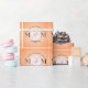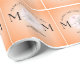 Das Papierdesign im Bild hat einen pfirsichorangen Hintergrund mit einem sich wiederholenden Muster. Jeder Teil des Musters enthält das Wort "MAMA" in einem kühlen, eleganten Schriftart. Das "O" in "MAMA" wird als Rundemblem mit einem handgezeichnet Bild einer Blume und dem Text "Muttertag glücklich" darüber stilisiert. Unter dem Kreis steht "Du bist der Beste" im kleineren Schriftart. Das Design ist in einem gitterartigen Layout gepflegt, was ihm ein sauberes und modernes Aussehen verleiht.