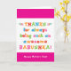 Sie nennen Ihre Großmutter Babushka, nicht Oma. (Babushka bedeutet Großmutter auf Russisch.) Stellen Sie sich vor, wie aufgeregt Babushka sein wird, eine Muttertagskarte zu erhalten, die speziell an sie adressiert ist! Ihr Babuschka wird auch Liebe dieses lustigen, farbenfrohen, textbasierten Design, das sagt "Danke, dass immer so ein phantastisch Babushka! Alles Gute zum Muttertag!" Machen Sie diese Karte anpassbar! Klicken Sie auf "Design bearbeiten", "Unten/Rechts: Text & Bilder", "Text" und "Text hinzufügen", um Ihre eigene, personalisierte Nachricht an Babushka zu schreiben!