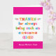 Sie nennen Ihre Großmutter Gigi, nicht Oma. Stellen Sie sich vor, wie aufgeregt Gigi sein wird, eine Muttertagskarte zu erhalten, die speziell an sie adressiert ist! Ihr Gigi wird auch das lustige, farbenfrohe, textbasierte Design dieser Muttertagskarte Liebe geben, in dem steht: "Danke, dass ihr immer so ein phantastischer Gigi seid! Alles Gute zum Muttertag!" Machen Sie diese Karte anpassbar! Klicken Sie auf "Design bearbeiten", "Unten/Rechts: Text & Bilder", "Text" und "Text hinzufügen", um Ihre eigene, personalisierte Nachricht an Gigi zu schreiben!
