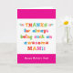 Sie nennen Ihre Mutter Mami, nicht Mama. (Mami bedeutet Mutter auf Spanisch, Deutsch, Punjabi und Slowenisch.) Stellen Sie sich vor, wie aufgeregt Mami sein wird, eine Muttertagskarte zu erhalten, die speziell an sie adressiert ist! Ihr Mami wird auch die Liebe dieser Karte lustige, farbenfrohe Text-basierte Design, dass "Danke für immer ein so phantastisch Mami! Alles Gute zum Muttertag!" Machen Sie diese Karte anpassbar! Klicken Sie auf "Design bearbeiten", "Unten/Rechts: Text & Bilder", "Text" und "Text hinzufügen", um Ihre eigene, personalisierte Nachricht an Mami inside zu schreiben!