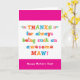 Sie nennen Ihre Großmutter Maw, nicht Oma. Stellen Sie sich vor, wie aufgeregt Maw sein wird, eine Muttertagskarte zu erhalten, die speziell an sie adressiert ist! Ihr Mann wird auch die Liebe dieses lustigen, farbenfrohen, textbasierten Design dieser Muttertagskarte, die sagt: "Danke, dass immer so ein phantastischer Maw! Alles Gute zum Muttertag!" Machen Sie diese Karte anpassbar! Klicken Sie auf "Design bearbeiten", "Unten/Rechts: Text & Bilder", "Text" und "Text hinzufügen", um Ihre eigene, personalisierte Nachricht zu schreiben, die Sie eintragen möchten!