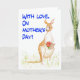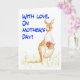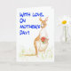 Eine Muttertagskarte mit einem handgemalten Känguru und einem Baby in ihrem Beutel, die ihr einen Strauß Blume zum Muttertag gibt. Bleiben Sie drinnen für Ihre eigene Nachricht.