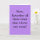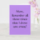 Eine Muttertagskarte, die für uns alle "erwachsene" Söhne und Töchter perfekt ist, um sie an die Mama zu schicken, die uns während all dieser "schwierigen" Jahre begleitet hat. Wir spenden einen Teil von JEDEM Verkauf an The Breast Cancer Research Foundation.