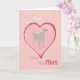 Diese niedliche Karte für Mama am Muttertag hat ein Bild eines Hundes mit einem großen Herz und ein Spray aus Blume um ihn herum, oder sie. Auf der Vorderseite der Karte steht "Liebe du Mama".