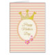 Glückliche Muttertagskarte mit rosafarbenen Blume und einer Krone auf der Kreuzung. Rosa und hellbeige Streifen im Hintergrund. Alle Texte können individuell angepasst werden.