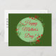 Grünes Muster mit Blätter und Aquarellrot Blume Postcard. Moderne grüne Typografie. Perfekte Wünsche für Mamas durch die Ehe.