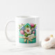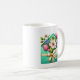 Diese klassische weiße Kaffeetasse wird mit einem reizenden floralen Muttertagsbouquet-Druck gezeigt.