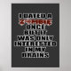 The phrase "I dated a zombie once but it was only interested in my brains" The letter "O" in the word Zombie has been replaced with a brain.