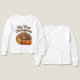 Adorable cartoon turkey with pumpkin and corn in warm autumn browns and oranges, perfect for celebrating a little one’s first Thanksgiving with cozy fall vibes and playful charm on a clean white long-sleeve. Great for family photos, seasonal outings, and festive memories with a friendly, modern illustration style.
