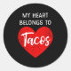 My Heart Belongs To Tacos - Funny Valentines Day Runder Aufkleber