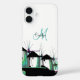 Sie können diese Samsung Galaxy Gehäuse mit Ihrem Monogramm personalisieren. Das Design basiert auf einem Foto der Windmühlen von Mykonos Town, Griechenland. Das Design ist modern, hauptsächlich grün, türkis und schwarz, auf weißem Hintergrund, mit einem Monogramm in passenden Farben.