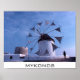 Ein Mann bewundert eine der berühmten Windmühlen auf der zauberhaften Insel Mykonos, Griechenland