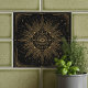 This exquisite ceramic tile features a striking celestial design, perfect for adding a touch of mystic elegance to any space. The intricate gold-line art showcases a central 'all-seeing eye' within a triangle, surrounded by a cosmic display of constellations, moon phases, and astrological symbols. The deep black background provides a dramatic contrast, making the golden details pop. Ideal for those fascinated by astrology, mysticism, or simply drawn to celestial aesthetics, this tile serves as a unique piece of art for your walls, backsplashes, or decorative accents. Its detailed craftsmanship and mystical theme evoke a sense of wonder and ancient wisdom, making it a conversation starter in any room. Embrace the cosmos and bring a touch of the ethereal into your home with this captivating tile.