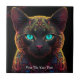 Mystic Neon Mandala Cat Psychedelic Feline Fantasy Fliese