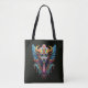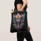 Make a bold statement with this stunning psychedelic deity mask design. Featuring sweeping golden horns, great feathered wings, and an ornately decorated face in rich teal, cobalt, violet and gold, this eye-catching print is packed with intricate detail that rewards a closer look every time.