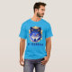Illustration eines Wolfskopfes in Blautönen mit himmlischen Details und Mustern, die das Geheimnis, die Spiritualität und die Verbindung zur Natur symbolisieren, umgeben von einem Kreis von aufwändigen goldenen Designs.