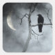 Eine hübsche mystische Krähe in der Nacht, die auf einen Halbmond starrt.