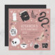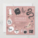 Planen Sie Ihre Glücksspielerin, Sinti und Roma oder Halloween Geburtstagsparty mit diesen spöttischen, schicken Einladungen in einer boho Natur inspiriert Farbpalette. Das Design zeigt Ihnen eine Schlange, ein Zauberbuch, eine Kerze, ein Glas, einen Schädel, eine Tarot-Karte und Tränke rund um Ihre Geburtstagsparty-Details.