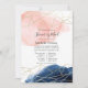 Trendiges Baby oder Brautparty mit Langstreckenbrille oder E-Mail-Einladung, mit marineblau und rot rosa Aquarelllackierung und goldenem geometrischem Rahmen.