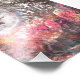 Ein Vollmond schwimmt über einem See in einem ruhenden, grauen Wald vor einem üppigen rosa Sonnenuntergang im Hintergrund.