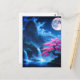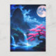 Mystical Moonlit Waterfall with Cherry -nature Postkarte