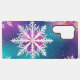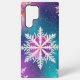 This phone case features a fantastical and romantic design that merges shimmering snowflakes with the glow of a magnificent cosmos. The background is a vibrant gradient of purple, blue, and turquoise, speckled with countless glittering lights like a galaxy of stars. The large snowflake at the center appears as a mystical symbol floating in the universe.