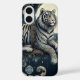 Dieses Design zeichnet sich durch einen mystisch-grauen Tiger aus, der ruhig in einem Baum sitzt und als ruhige Kulisse für den Mond dient. Der Tiger symbolisiert Schutz und Vormundschaft. Das Boho-Indian Fusion-Bild enthält filigrane Elemente in Gold, Silber und Orange. (KI Art von Susang6)