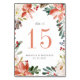 Chic Blumenkarten verfügen über einen Rahmen aus Aquarellfarben-Blume, Blume, Poinsettia und Beeren, die Ihre Tischnummer in Weiß umrahmen. Personalisieren Sie mit Ihren Namen und Hochzeitstermin, oder benennen Sie jeden Tisch für eine zusätzliche persönliche Touch. Design wiederholt sich auf der Rückseite. Koordiniert mit unserem Mystical Winter Hochzeitssuite.