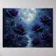 Dieses whimsigoth Poster zeigt ein fantasievolles digitales Bild eines wunderschönen Vollmonds und dunkelblauen schwarzen Rose.